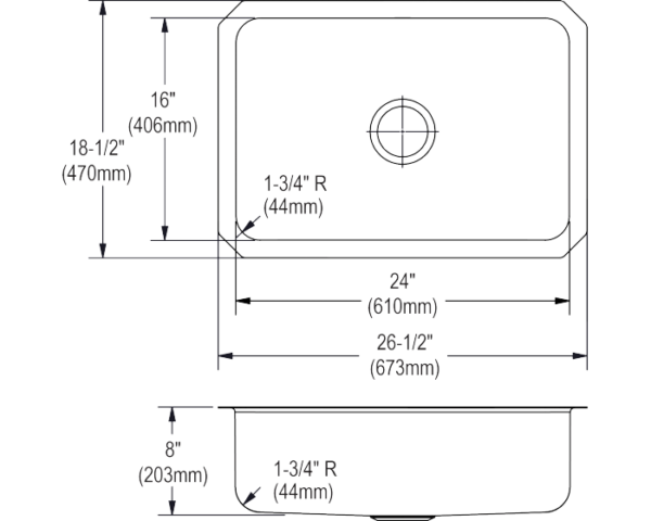 Dayton Stainless Steel 26-1/2″ x 18-1/2″ x 8″,