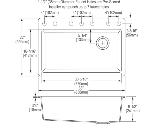 Elkay Quartz Classic 33″ x 22″ x 9-1/2″,
