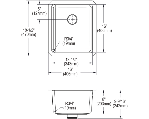 Stainless Steel 16″ x 18-1/2″ x 8″,