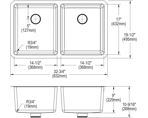 Stainless Steel 32-3/4″ x 19-1/2″ x 9″,