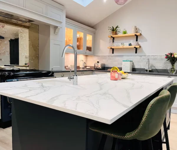 Liquid Sky is Ultra Compact Dekton it is incredibly dense, formed under 25,000 tons of pressure.