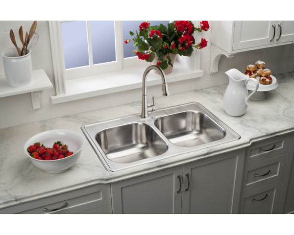 Kitchen Faucet with Pull-down Spray Forward Only Lever Handle Lustrous Steel